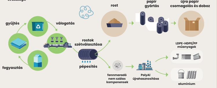 Az italos karton újrafeldolgozhatósága a gyűjtéstől a PolyAl hasznosításig több lépésből áll