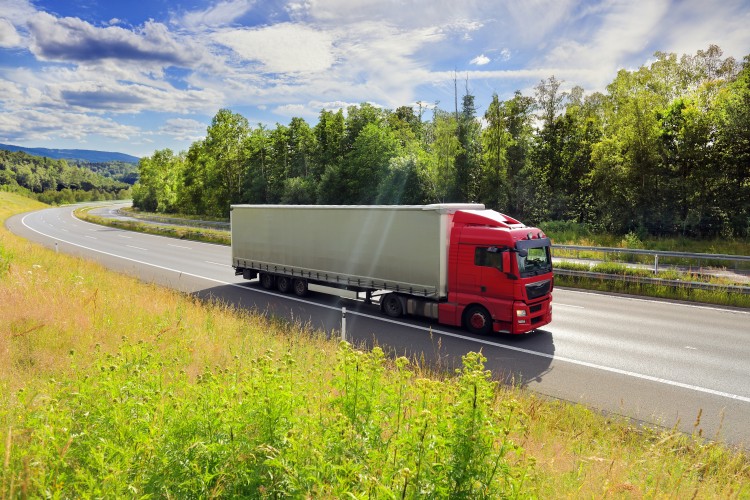 Egy kamion halad az autópályán, amely a közúti áruszállítás meghatározó eszköze.